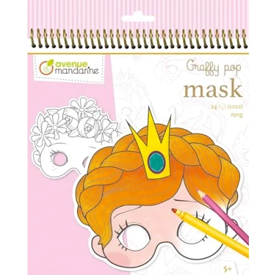 Avenue Mandarine Ref GY021O Graffy Pop Colouring Masks Girls 24 to Colour, Pre Cut for Easy Removal, 12 Designs of Mask, Suitable Ages 5+