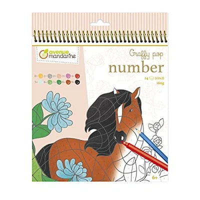 COLORING BY NUMBER: Each drawing is divided into multiple numbered boxes Each number has a colour associated with it Once coloured, the boxes reveal a pretty illustration A very popular activity for children! CONTENT: This pretty spiral notebook contains 24 20x20 cm illustrations to be coloured QUALITY PAPER: 12 designs x2 printed on Clairefontaine 160g drawing paper ECOLOGICAL: PEFC certified in favour of the protection and sustainable management of forests Complies with CE standards ATTENTIVE TO PRETTY THINGS: Avenue Mandarine accompanies children and parents with elegant and designer edutainment games We offer fresh and up-to-date colours, tender illustrations, imbued with sweetness and poetry, to promote discovery, play and the awakening of the senses of children from 2 to 10 years old, Manufacturer: Clairefontaine