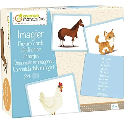 Avenue Mandarine is a French brand with fun games belonging to the Clairefontaine Rhodia group Our high quality products meet your requirements to satisfy your children and accompany them in the discovery, play and awakening of their senses Very nice picture book composed of 24 beautifully illustrated cardboard images On one side: the illustrated animal On the back, the name of the animal in 10 languages will allow them to learn the chosen language with the help of an adult Imitate their cry, pronounce the name of what is represented on each card (in French, English, etc ), know how to recognize them, then sort them (by size, number of legs, coat, etc ), hide a card and try to find this who has it by asking questions this picture book offers dozens of educational and development possibilities We recommend it from 18 months to accompany the child for several years The large format of the cards is designed to facilitate the handling of the very young and/or use in a community Contains 24 images in thick cardboard dimensions 11 5x12 7 cm - Image on the front and translation into 10 languages on the back Lid of the magnetic box to facilitate the storage of the cards and the transportation of the box., Manufacturer: Clairefontaine