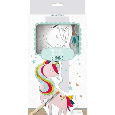 Avenue Mandarine Ref PP035C Friends to Paint Painting Kit Simone the Unicorn 24cm Printed Cotton Animal, Full Instructions Supplied, Suitable for Ages 6+