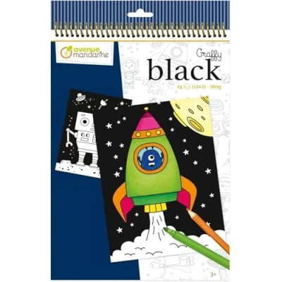 Avenue Mandarine Spiral Coloring Book Black Background to Bring Out the Colors 24 Pages (12 Designs x 2) 160g Paper Space Ages 3 and Up Graffy GY148C