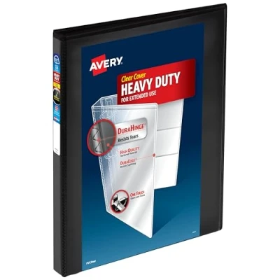 Avery 0.5" Heavy Duty View 3 Ring Binder, One Touch Slant Ring, Holds 8.5" x 11" Paper, 1 Black Binder (79381)