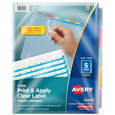 Product description: Avery Label Dividers Colour: Multi-coloured Print technology: Inkjet Label type: Translucent