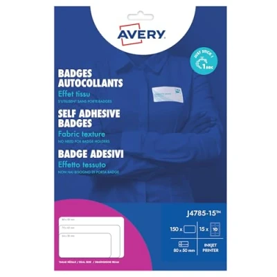Avery 15 Sheets of 10 Printable Customisable Textile Badges, Silk Acetate, Size 80 x 50 mm, Inkjet Printer, J4785
