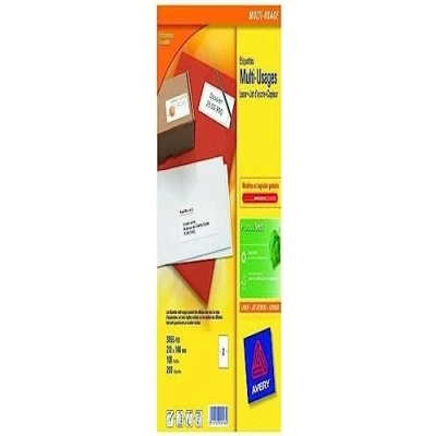 Product description: Avery - 3655-100 Product type: 200 multi-purpose labels Printer technology: Laser/inkjet/laser copier Media colour: white Use: Addressing/multipurpose/identification Dimensions: 210x148 mm