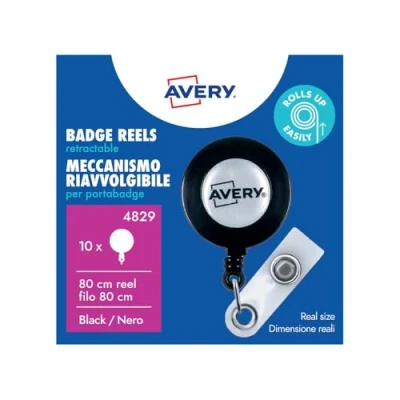 Avery badge reels are useful for hanging a variety of name badges Ideal for also keeping keys, whistles and other small items safe and within easy reach Hands-free, convenient access to must-have items Save time with Avery free, easy-to-use template software; Avery design and print Colour: black