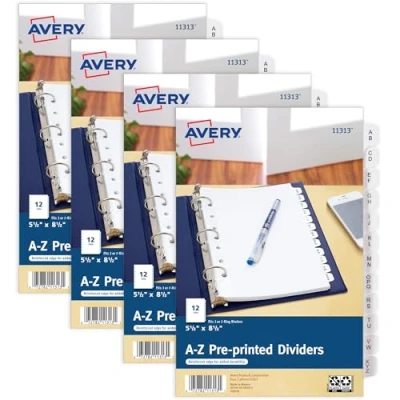 Avery A Z Dividers, 12 Tab Sets, 8 1/2" x 5 1/2", 4 Binder Divider Sets (43131)