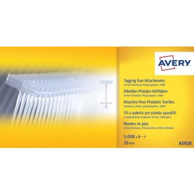 Avery AS020 Tag Attachments for Standard Tagging Gun (20 mm, Box of 5000) Clear