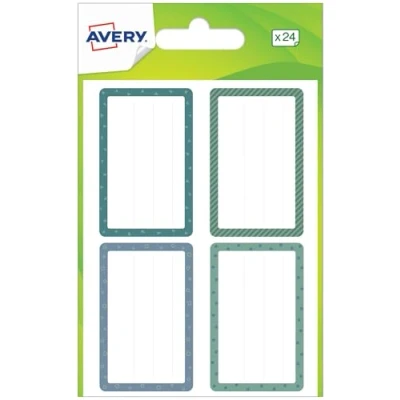 Avery Bag of 24 Blue and Green School Labels, 36 x 56 mm, White with Lines, Self Adhesive Labels for Name, First Name Materials, Personalised Stickers