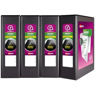 Avery Durable View 3 Ring Binder, Inch Slant Rings, 4 Black Binders (17050)