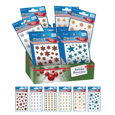 Avery España 52938 Assorted Adhesive Stars in Shiny Foil of Various Christmas Colours, 6 References, Total 60 Stickers