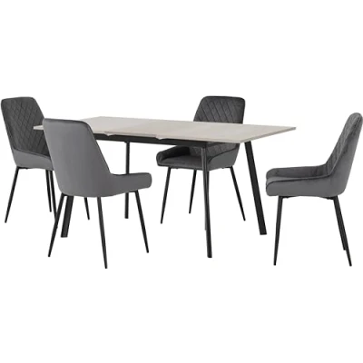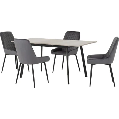 Avery Extending Dining Set with Chairs Concrete/Grey Oak Effect/Black/Grey Velvet