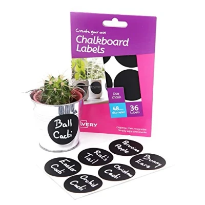 Organise then reorganise with wipeable Chalkboard Labels Write on with chalk or chalk marker, Wipe off with damp cloth Wipe off with damp cloth Removes cleanly and easily when you want the label to come off Part of Avery's Create your own range