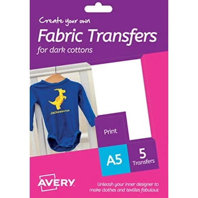 Avery HTT02 Printable Fabric Transfers for Dark Cottons, 1 Transfer Per A5 Sheet