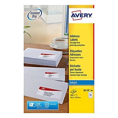 Product description : Avery - J8159 Product type : 960 labels for inkjet Printing technology: inkjet Colour of paper : white