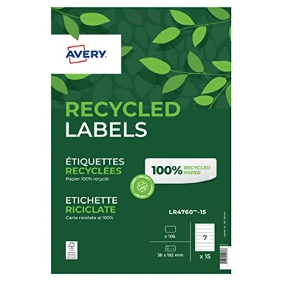Avery Recycled Filing Labels LR4760 15, 38 x 192 mm 15 Sheets of 7