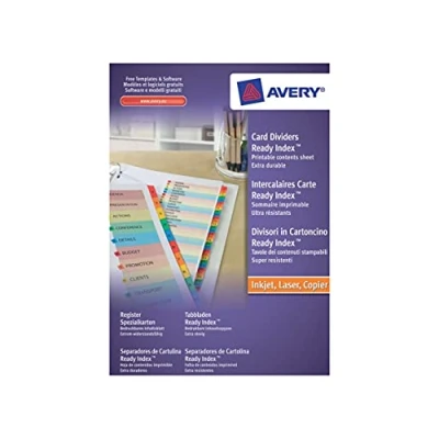 Colour-coded dividers with a customisable contents sheet. Show off your hard work in style with dividers and printed tabs. Whether you need to create a professional looking client presentation, or simply organise your documents for easy reference, there is an Avery divider system to suit you. Extra strong reinforced punched holes and laminated tabs for long lasting use.