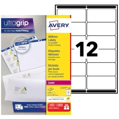 Avery Printable, Customisable Address Mailing Labels, Laser Printers, 12 Labels Per A4...