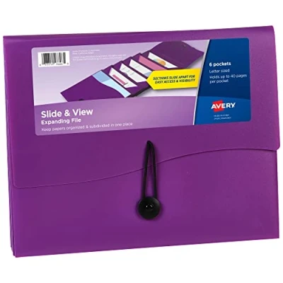 Avery Slide & View Expanding File Folder, 6 Pockets, Letter Size, 1 Plum Folder (73543)