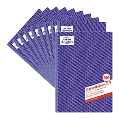 AVERY Zweckform 1773 10 Hour Proof (A4, self Copying, Tested by Legal Experts, for Germany and Austria Complete Working time Recording, 2 x 40 Sheets), Pack of 10, White/Yellow, Blue