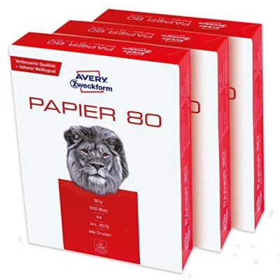 Avery Zweckform 2575 Printer Paper, Copier Paper (1,500 Sheets, 80 g/m², DIN A4 White, for All Printers) 1 Box of 3 Pack