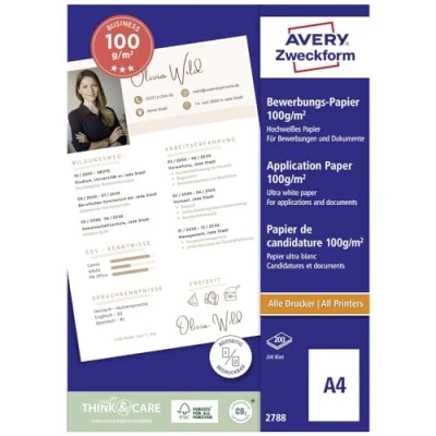 AVERY Zweckform 2788 Inkjet Application Paper (200 Sheets, 100 g/m², DIN A4 Paper, Coated on Both Sides, Satinised for Applications, Presentations & Sales Documents, Printers)