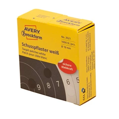 Item Package Quantity: 1 Package Weight: 60 grams Model Number: 3521 Colour: White Trust the original label manufacturer Ideally suited for sticking bullet holes on bullseyes at gun clubs Preprinted