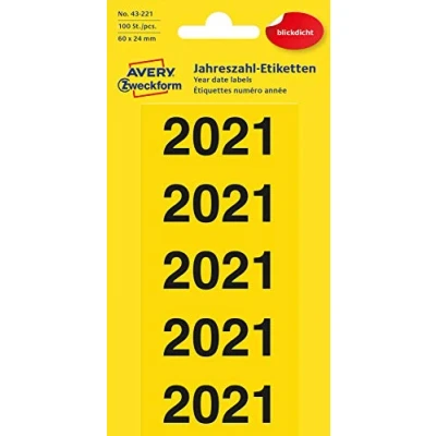 AVERY Zweckform 43 221 Year Stickers for Folder Labels 60 x 24 mm 2021 Print 100 on 20 Sheets Opaque Self Adhesive Permanent Yellow