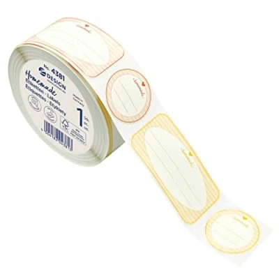 600 high-quality stickers "Homemade" on a roll in 3 designs, two shapes each, particularly handy to use - ideal for writing on handmade items for Christmas, weddings, birthdays and much more.) Stylish stickers for decorating gifts, homemade items such as jam, chutneys, biscuits, liqueurs, preserves, party favours, as labels for storage and much more. Refined, high-quality paper material in pastel look in lovingly coordinated designs - the round and square stickers are perfect for decorating glasses, storage containers and much more. Made in Germany - produced at the climate-neutral location in Upper Bavaria - greenhouse gas emissions balanced by certified climate protection projects Environmentally friendly product: FSC certified sticker material from responsibly managed forests