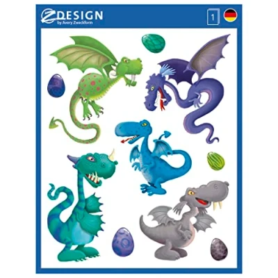 AVERY Zweckform 54992 Window Decorations Dragon (9 Self Adhesive Stickers, Stickers and Decoration for Windows, Film) Multi Coloured