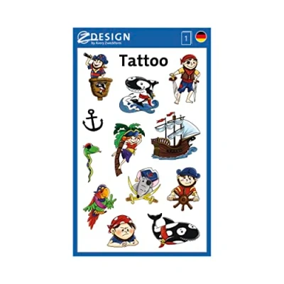 AVERY Zweckform 56683 Children's Tattoos, Pack of 12 (Temporary Tattoos Pirates, Waterproof, Adhesive Birthday, Party Bags, Games Prizes, Children to