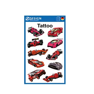 Pack of 10 cool racing car tattoos for boys in Ferrari red - with 5 racing cars in Formula 1 style and 5 racing cars in different designs Top quality made in Germany: the temporary tattoos are child-safe, dermatologically tested and are regularly checked by external testing centres Easy to apply: cut out the desired tattoo, remove the protective film, press on the skin, moisten with a wet sponge, wait 30 seconds - done The waterproof and sweat-proof temporary children's tattoos can be easily removed with skin oil, baby oil, cooking oil or alcohol Ideal party gift for children's birthday: great win for children's party games, scavenger hunt and imaginative party bags for the guests