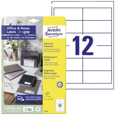 Avery Zweckform 6123 Labels 42.3x97 mm for Inkjet Laser Copy 10 Sheets