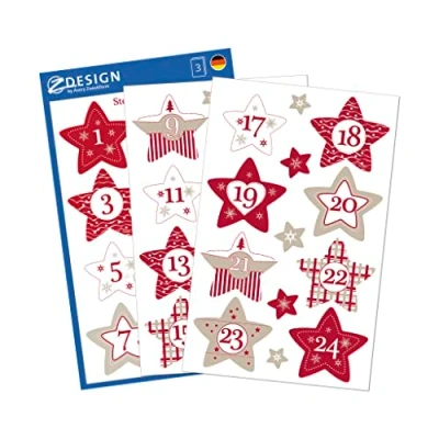 Contents: 24 high-quality advent calendar numbers from 1-24 on 3 sheets, on enchanting Christmas and lovingly designed star motifs - ideal for beautifully festive Christmas decorations Refined, high-quality paper material in trendy Scandi look red/white/grey - the Christmas number motifs conjure up a beautiful Christmas atmosphere everywhere Stylish Christmas stickers ideal for Christmas decoration of DIY advent calendars: for gifts, cards, vouchers, advent calendar bags, boxes, boxes and much more. Top quality, made in Germany: regionally produced in the CO2 neutral company Avery Zweckform in Upper Bavaria Avery Zweckform offers a wide range of high-quality and lovingly designed stickers for the whole family, whether it is for school, Christmas, homemade, household and much more