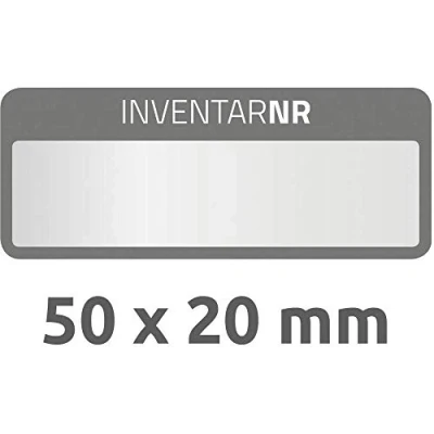 Silver polyester foil inventory labels written on by hand in the field Ideal for permanent security label for inventory and property 1 name tab holder: Inventory NR. Rip-proof and temperature-resistant from -40 °C to + 150 °C Resistant to water, oil, cleaning, Disinfectant and solvents