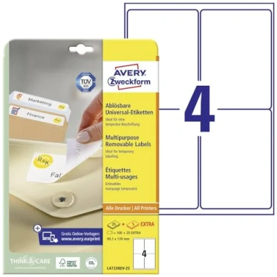 Avery Zweckform L4733REV 25 Universal Labels Sheets / 100 99.1 x 139 mm White