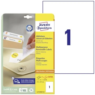 Avery Zweckform L4735REV Universal Labels (25 A4 Removable 210 x 297 mm 25 Sheets White