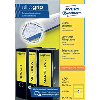 Avery Zweckform L4769 20 Folder Labels for Wide Folders Short e.g. Leitz Elba Mehle Bene Biella 192 x 61 mm Sheets
