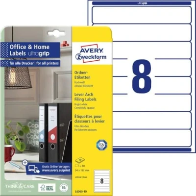Avery Zweckform L6060 25 A4 Folder Labels, 200 Pieces, Opaque 192 x 34 mm, White 80 Labels 10 Blatt