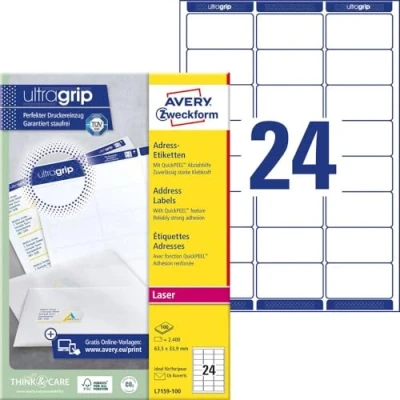 AVERY Zweckform L7159 100 Address Labels Sheets 2400 63.5 x 33.9 mm White