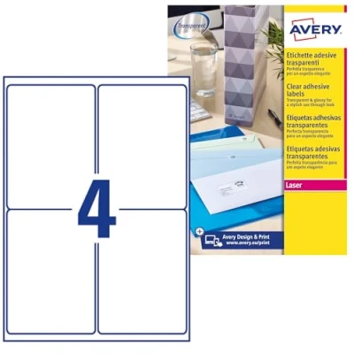 AVERY Zweckform L7786 25 Transparent Labels (100 Adhesive Labels, 99.1 x 139 mm on A4, Stickers for Printing, Self Adhesive, Weatherproof, Labels/Product Stickers), Sheets,