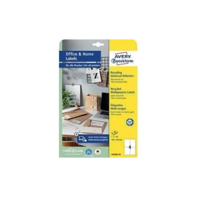 AVERY Zweckform LR3483 10 Recycled Labels (40 Address Labels, 105 x 148 mm on A4, 100% Paper, Printable Shipping Self Adhesive DHL), Sheets, Natural White