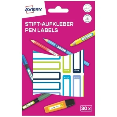 AVERY Zweckform RESMI30G Children's Name Stickers Pens Pack of 30 (50 x 10 mm, Paper, Self Adhesive Pen Stickers, Writeable Labels, Mini Labels for School, Nursery) Blue, Green