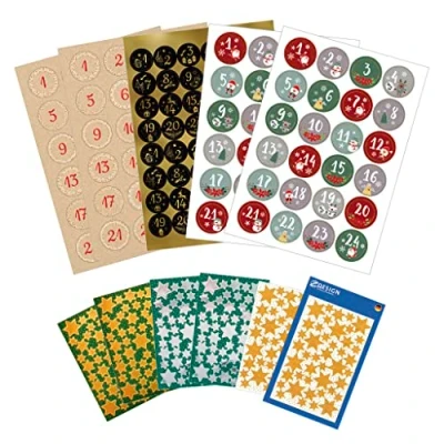 Contents: 398 high-quality advent calendar numbers and stars in a set on 11 sheets with enchanting Christmas and lovingly designed motifs - ideal for beautiful festive Christmas decoration Refined, high-quality paper material or gold/silver printed glossy paper for gloss effects - the stylish numbers and stars conjure up a beautiful Christmas atmosphere everywhere Stylish Christmas stickers ideal for Christmas decoration of DIY advent calendars: for gifts, cards, vouchers, advent calendar bags, boxes, boxes and much more. Top quality, made in Germany: regionally produced in the CO2 neutral company Avery Zweckform in Upper Bavaria Avery Zweckform offers a wide range of high-quality and lovingly designed stickers for the whole family, whether it is for school, Christmas, homemade, household and much more, Manufacturer: AVERY Zweckform