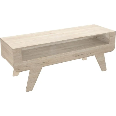 This retro looking simple and lightweight TV stand is the ideal addition to your home if you are looking for an altertative to glass. Measuring 120cm Wide x 39.2cm Deep x 45cm High Strong and sturdy, holding a max weight of 40kg and designed for TV screen sizes up to 60" (NB: please measure the base footprint of your TV to ensure it fits). Open shelf, ideal for your AV equipment and soundbars, along with integrated cable management to channel your cables out of the rear of the unit. Supplied with all fixings and easy-to-follow instructions plus our UK supportline should you need us! Unique single piece front and back section featuring a tapered leg design for an alternate look to your TV/entertainment set-up.