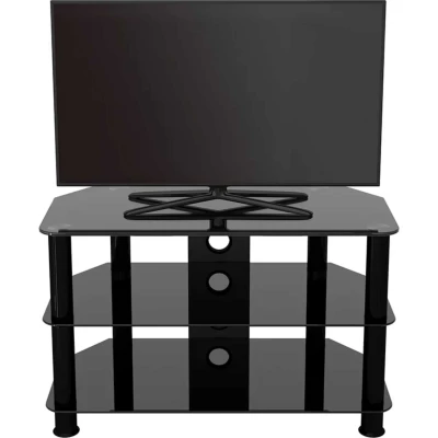- This AVF TV stand's compatible with TVs up to 43” weighing up to 40 kg- The black tempered glass shelves are rock solid and will add a touch of class to your room- With its angled back, you can place it in the corner of your living room without taking up much space- Keep everything looking neat and tidy with its built-in cable management- It's quick and easy to put together and comes with everything you needPLEASE NOTE: Screen sizes are a guide only, and it's recommended that you measure the width of your TV, particularly if your TV doesn't have a central base. Recommended screen sizes with split feet may overhang the edge of the stand.