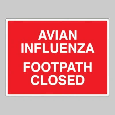 Avian influenza Footpath closed Size: (600x450mm) Semi Rigid PVC Safety Sign by Caledonia Signs