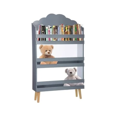 Avilia Cloud Bookcase for Children with 3 Shelves in Wood, Grey, Space Saving Books and Toys, 58 x 100 18 cm