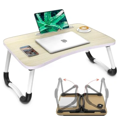 Avilia Folding Bed Table with Cup Holder and Stand for Tablet, 60 x 40 cm, Black, Space Saving, Easy to Carry, Ideal Living Room, Bedroom, Relaxation Areas Smart Working