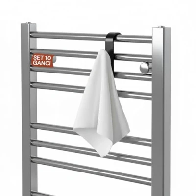 Avilia Set of 10 Black Hooks Universal Towel Rail in Sturdy Plastic, Easy to Install on Shelves and Doors Without Holes, Space Saving Hanger for Home Office Bathroom Kitchen